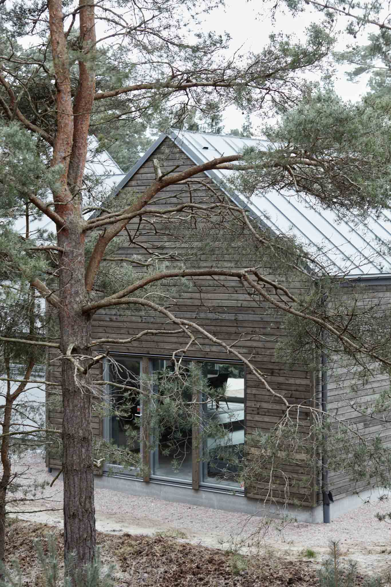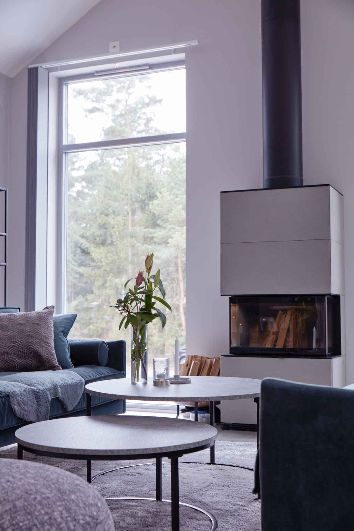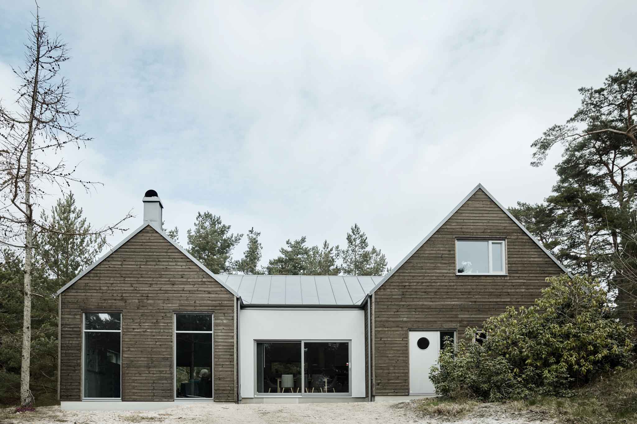 En kundunik villa med liggande panel i järnvitriol som möter en mittdel i puts – en kombination som skapar en stilren kontrast. Det grå plåttaket och de foderlösa detaljerna ger huset en modern känsla, samtidigt som helheten känns tidlös och elegant. Beläget i Åhus, Skåne.
